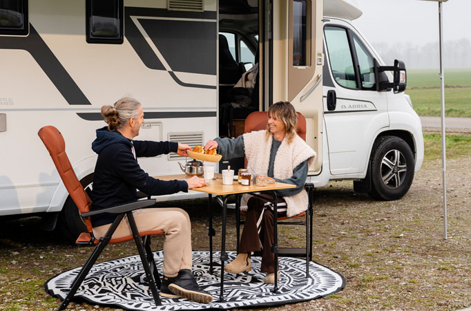 Op de camping zelf draait het om eenvoud en comfort. Een fijne stoel van Dukdalf, warme verlichting en een vloerkleed in de voortent maken je plek direct behaaglijk. Een klein waslijntje of een waterdichte tas blijkt vaak handiger dan je vooraf denkt. En voor de avonden is een boek, spel of e-reader alles wat je nodig hebt. Heb je elektriciteit, dan is een kacheltje natuurlijk uiterst comfortabel, zeker in een caravan of camper, waar de ruimte snel aangenaam warm wordt.